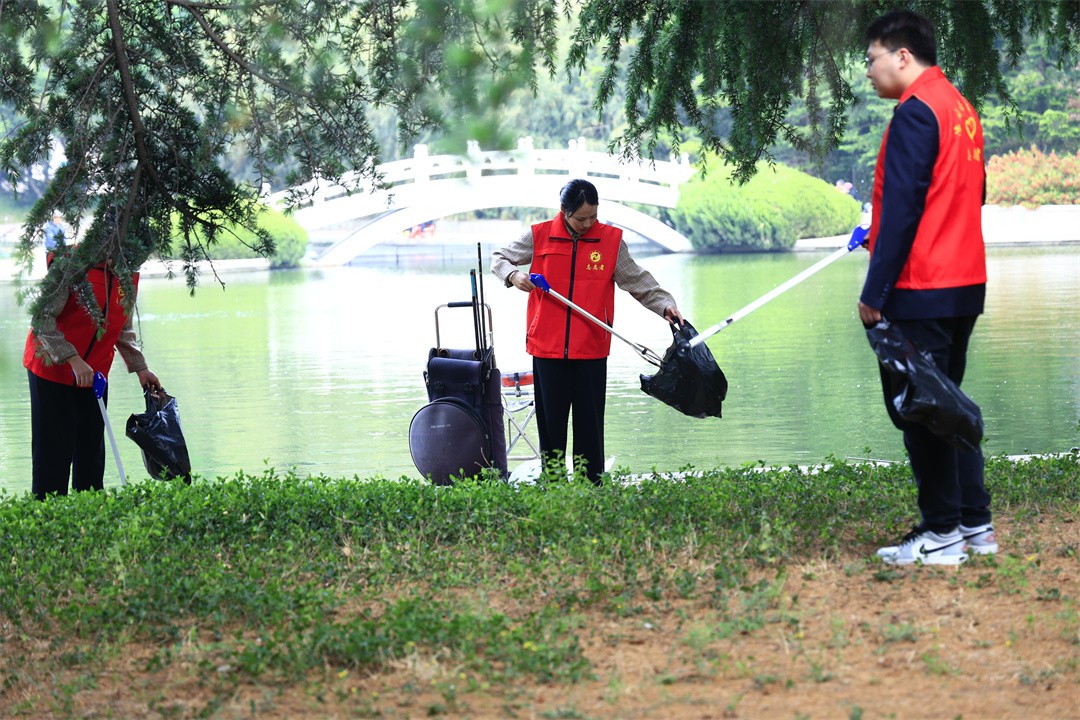 活动主要目的是维护宾馆园林环境,为广大来馆宾客提供干净整洁、优美舒适的环境。本次捡拾北大楼以南、俱乐部以北,网球场以西、玉带河以东游客密集区域的垃圾和杂物。大家2人一组分工协作,穿梭在竹林、草地和廊亭水榭之间,将烟头、白色垃圾和杂物捡拾干净,为宾馆园林环境奉献青春担当。