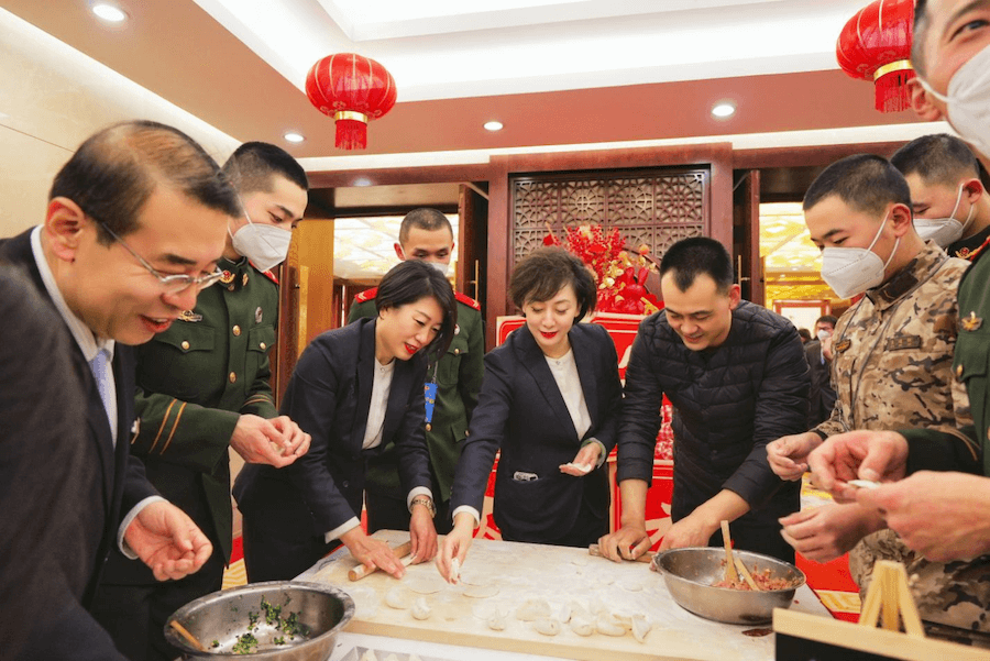 盛会恰逢新春佳节来临之际。为了营造欢乐喜庆的节日氛围,taptap点点体育宾馆对公共区域环境进行了精心布置,红灯笼、花灯笼、贴窗花、挂福饰……令人大代表们眼前一亮,开怀一笑。2023年是癸卯兔年。山东大厦各餐厅节日氛围浓郁,兔年吉祥展台、年宵花福桶、兔爷非遗装饰等令人赏心悦目。1月14日恰逢小年,餐厅里设置DIY水饺操作台,代表、委员们与大厦服务人员,一起包水饺,煮水饺,餐厅一时间变成了家的厨房。餐厅门口还设置了“迎春纳福”书法展台,供代表委员们挥毫泼墨,书写新春的祝福。贴着自己写的春联与福字,品尝着自己包的水饺,代表委员与大厦工作人员共度小年夜,温情感动,其乐融融,感受家一般的温暖。