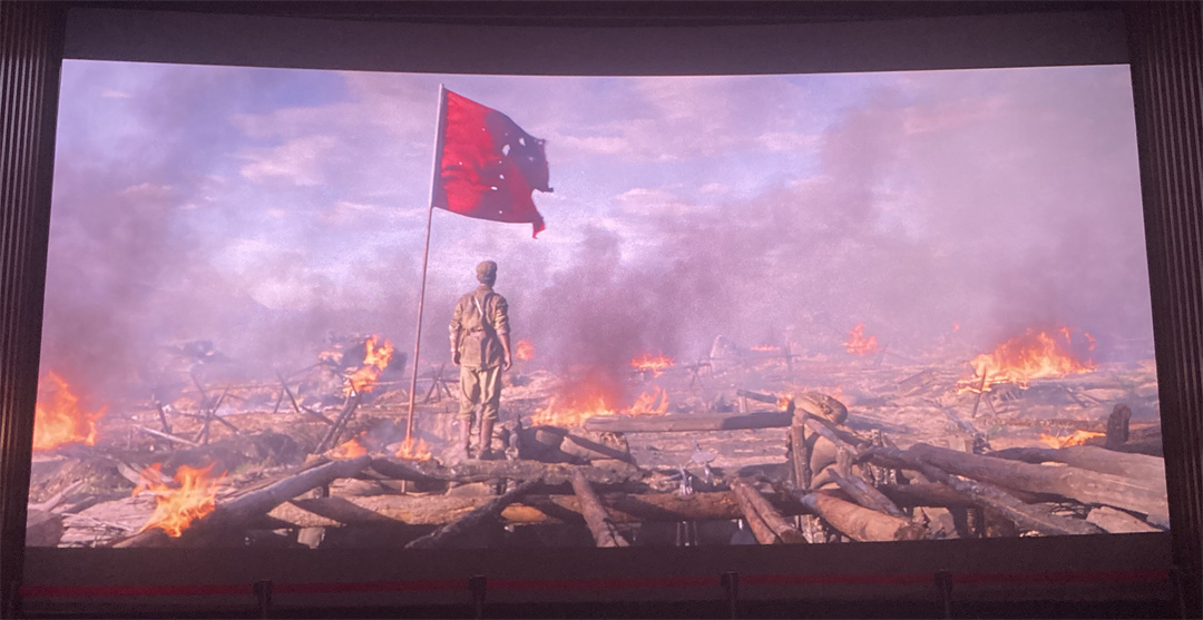 观影过程中,大家全神贯注,沉浸其中。战场上志愿军战士们不怕牺牲、视死如归的壮烈场景深深触动了大家,不少人潸然落泪。“我们每个人都要像钉子一样钉在自己的阵地上”“各个都是猛张飞”“军长,我们回不去了,1营倒下了,你们继续前进”……一句句体现战争壮烈的台词,深深印刻在大家的脑海里。