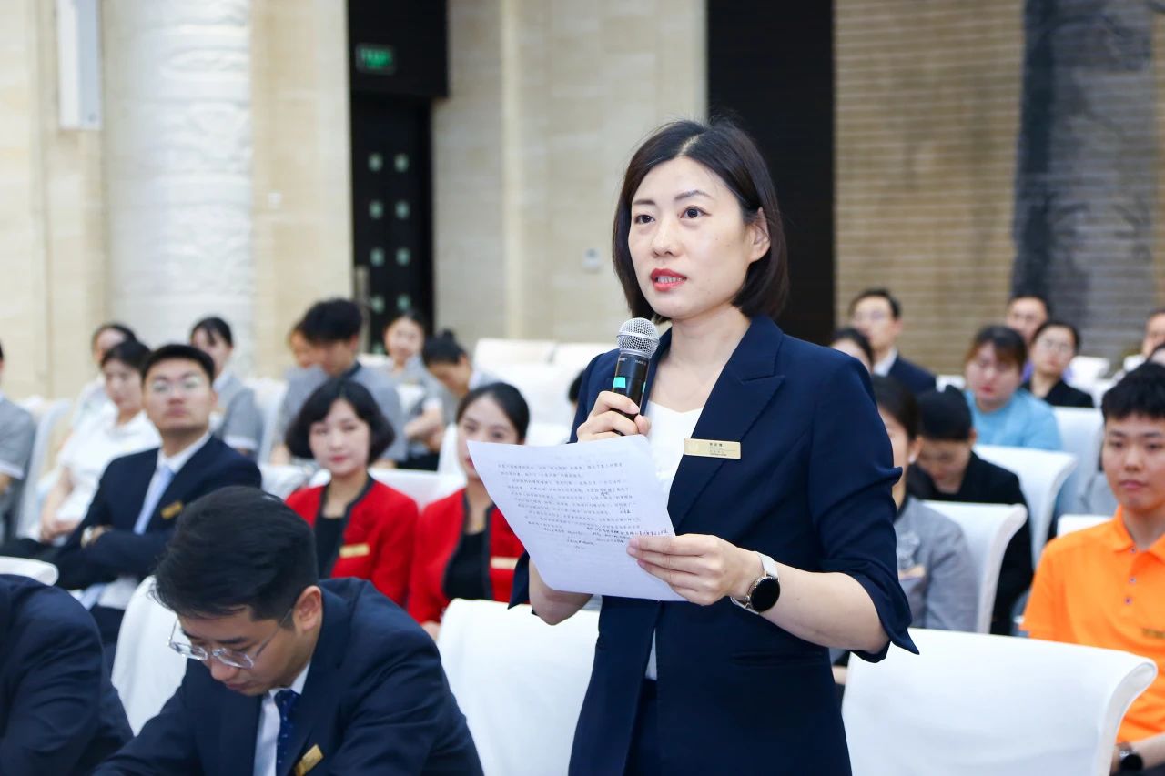 在第一季度,山东大厦以“真情匠心,开启宾客美好体验之旅”为主题,织就了无数令人难忘的服务瞬间,我们成功接待了山东省“两会”、全省抓改革创新促高质量发展大会、全省提振消费工作大会等重要活动,累计收获宾客表扬信2844封,各平台网络点评704条,携程网平均得分4.93分。这一项项数据,恰如散落的珍珠,而今天的会议,正是全体大厦人共同拾珠成串的金线。