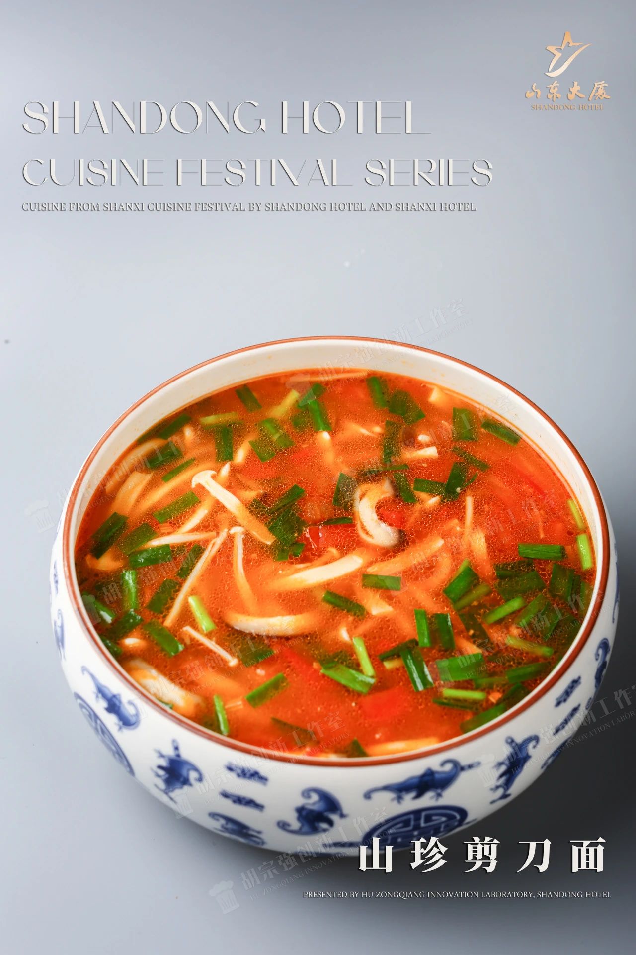 山珍剪刀面 晋商鼎盛时期,祁县乔家将吕梁山台蘑、黑木耳等山珍入汤提鲜,形成"面如银鱼跃珍海,汤若琥珀蕴菌香"的宴席佳品。面体经剪刀飞剪成游鱼状,既承"剪取天下"的帝王气韵,又以山珍配伍暗合"山珍海错聚宝盆"的晋商宴饮美学。