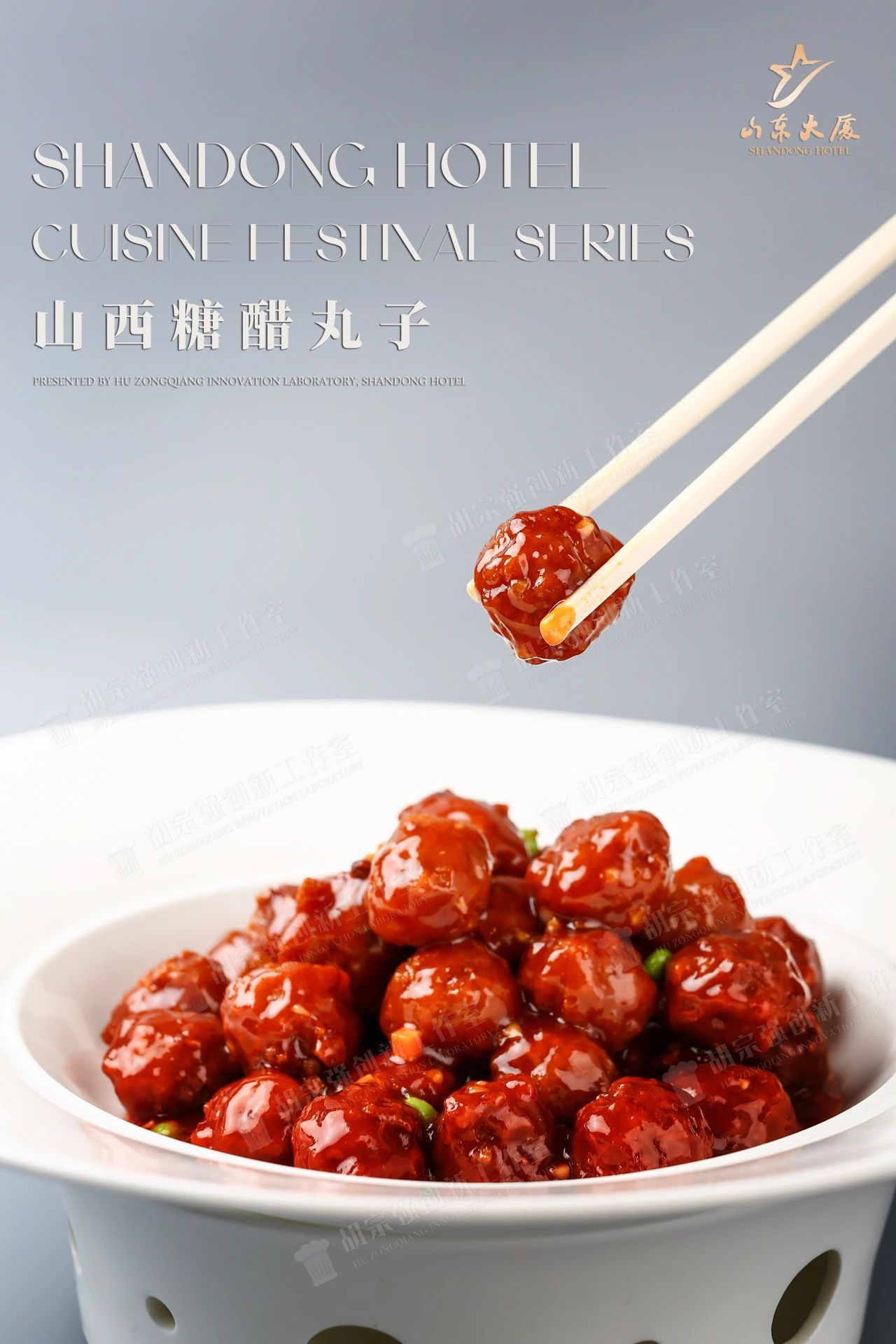 山西糖醋丸子 源自宋代宫廷宴饮传统,经改良融入山西老陈醋的醇厚酸香与面食文化精髓,作为太原传统宴席"八大碗"核心菜品,其圆润形态与糖醋红亮色泽,既暗合晋商"团圆美满"的宴客哲学,又以"先酸后甜"的味觉层次诠释黄土高原"苦尽甘来"的生活智慧。