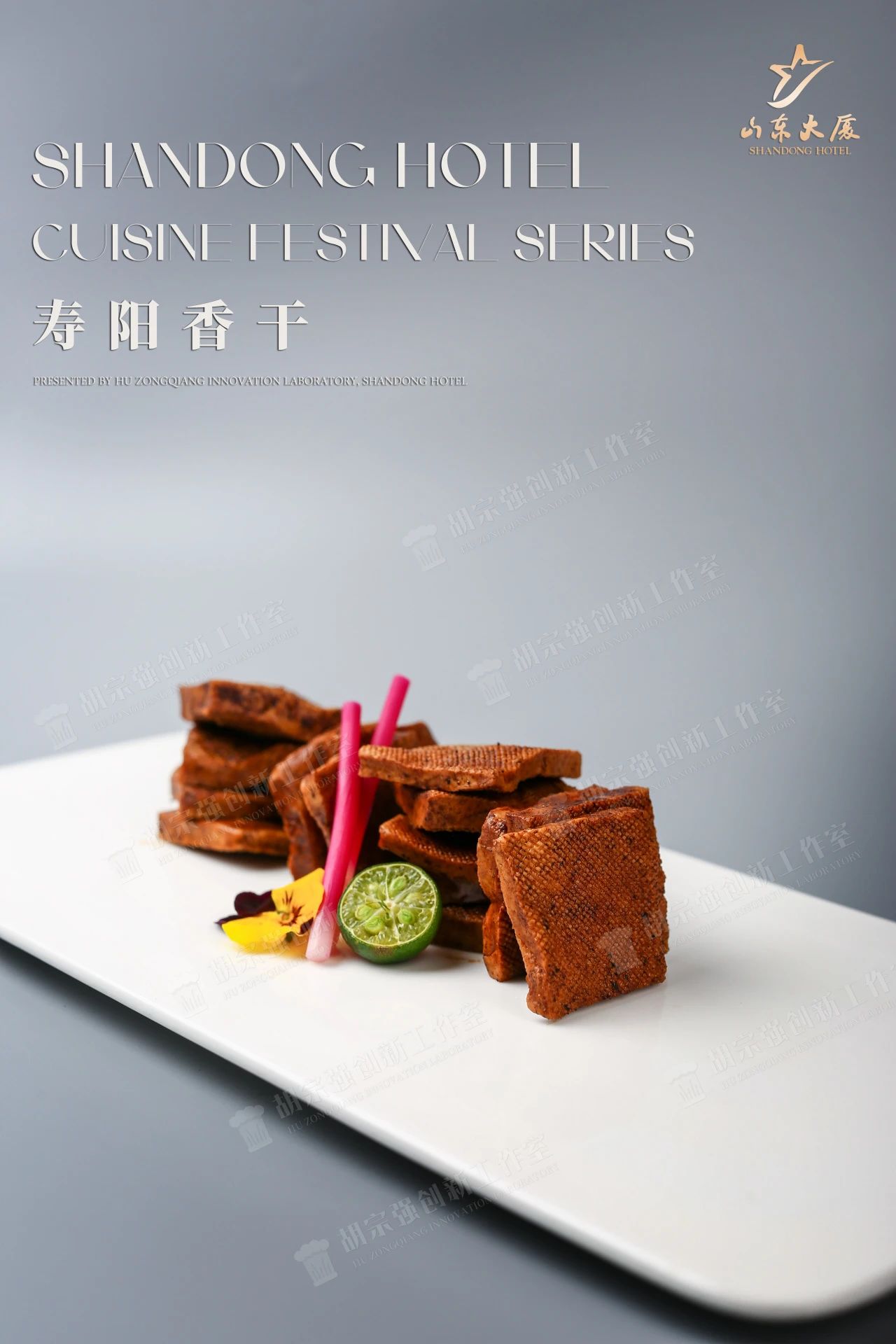 寿阳香干 肇始于清康熙年间,承晋商商贸繁盛之风,以当地富硒大青豆、深层岩泉为基,经“九浸九煮”古法精制,形成褐红表色、金黄内质,口感韧滑如缎,低糖微咸中透豆脂清香。