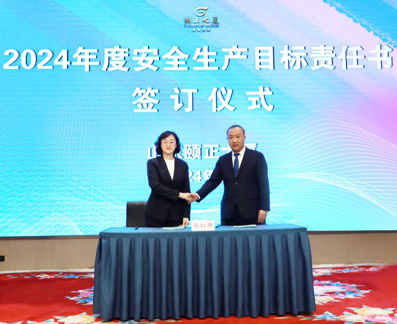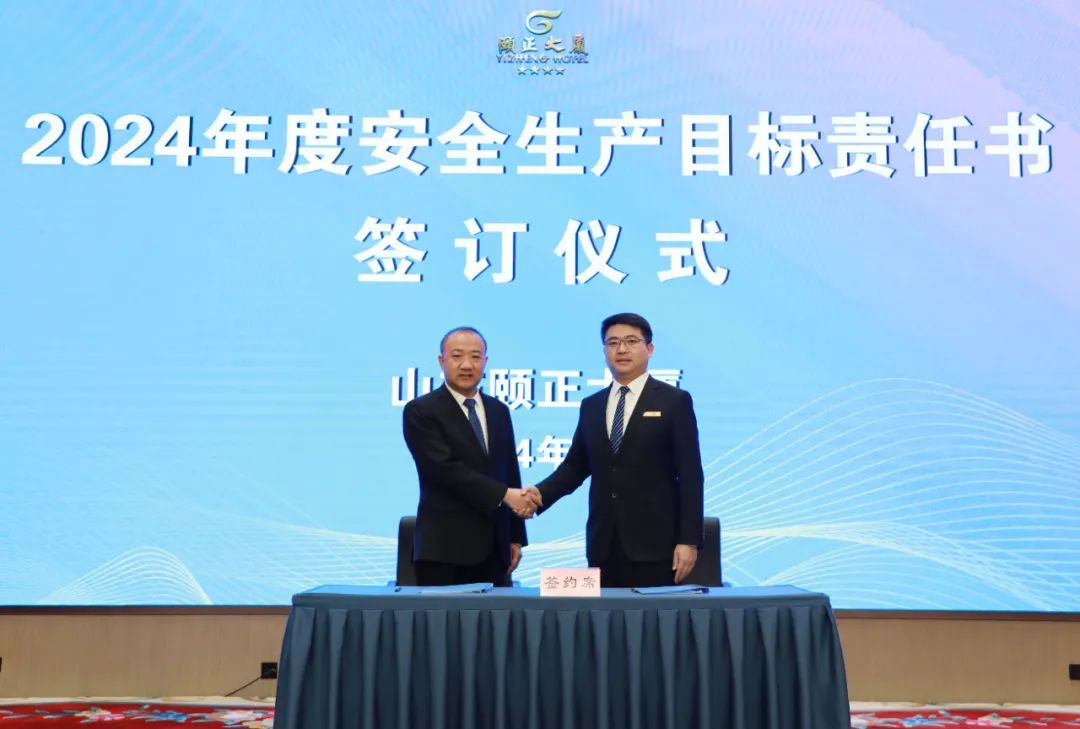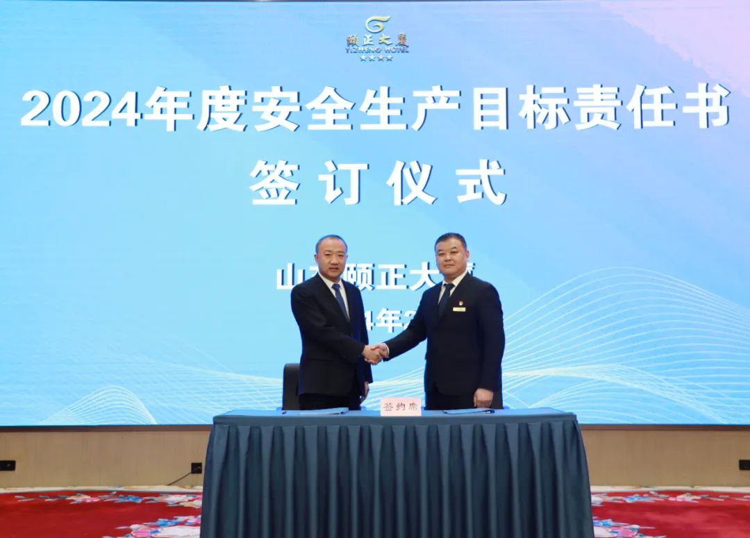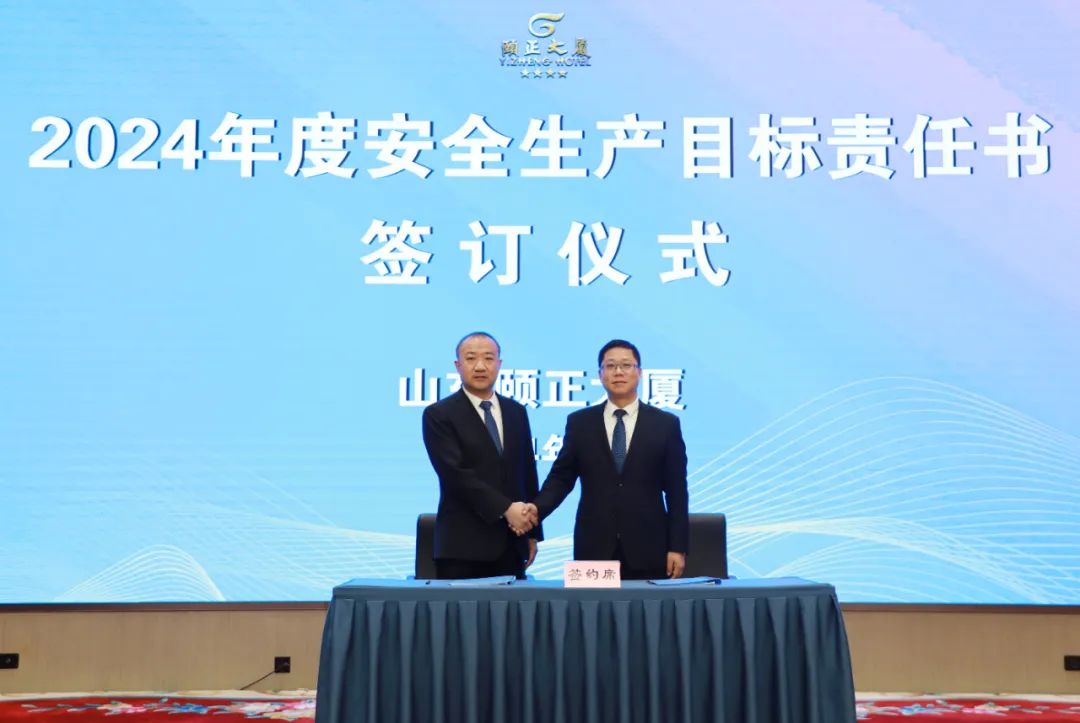 观看视频结束后,山东颐正大厦有限公司董事长、副总经理、总监层层签订2024年度安全生产工作目标责任书。会后各部室负责人结合工作实际内容与员工层层签订。