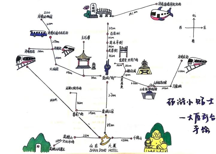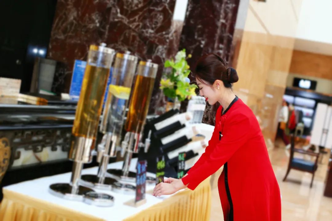 抵近总台,有甄选的网红饮品茶水台,矿泉水、冷柠檬水、蜜桃乌龙冷萃茶和热陈皮白茶等饮品,冷热皆宜,渐解旅途倦意。如果有喜欢的饮品,大厦还贴心地准备了一次性水壶便于外带。同时,摆放在总台上的还有大厦心灵手巧的姑娘小伙设计的手绘济南旅游一览图,方便宾客更直观地了解济南各景区、交通路线。此外,根据假期出行宾客需求,我们还特准备了“百宝箱”,箱内有各种修理工具、创可贴等物品,东西虽小,但却多次帮助宾客解决一时之难,受到了广泛欢迎。