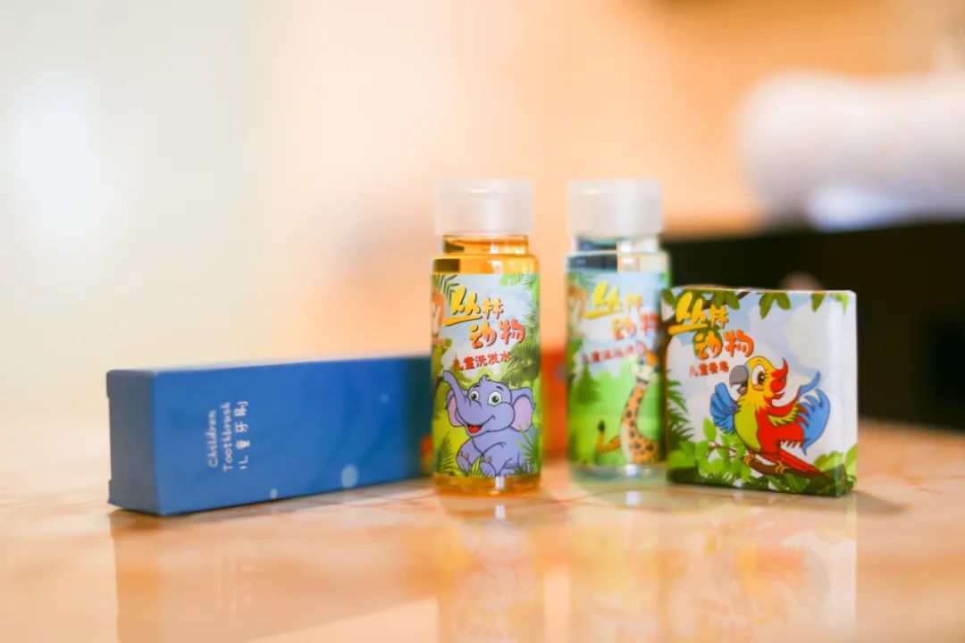 客房的小蜜蜂们在假期前积极进行love式服务的策划,精心打造了家庭套房,卡通图案的小床,让孩子们一入住就爱上这里。儿童洗漱套装、儿童玩具、方便携带的卡通福袋、小扇子、手链、拼图等,深受孩子的喜爱。