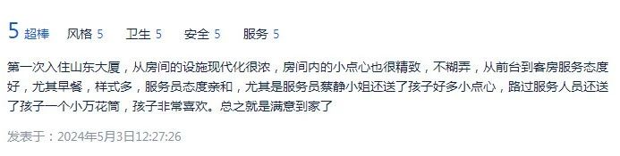 烟火万家、饕餮美食、悠悠文脉、亲子温情,所谓“家和”,就在山东大厦,在这尊贵、温馨、好客服务的氛围中,山东大厦也创下了节日间连续三天营业额过百万的可喜成绩,再次收获到众多的好评。