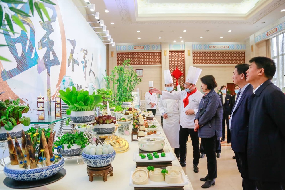 淮扬菜是中国传统四大菜系之一,与鲁菜孔府菜并称“国菜”,是“国宴”菜单主菜首选。“开国第一宴”就是以淮扬风味菜点为主,因菜品质朴、清鲜、醇和的特点,为国宴的精练简约定下基调。淮扬菜发源于扬州、淮安,大多以江湖河鲜为主料,以顶尖烹艺为支撑,以本味本色为上乘,以妙契众口为追求,蕴含“和、精、清、新”的独特理念,素有“东南第一佳味,天下之至美”的美誉。其“南北适宜、营养全面”的特点,更是让它成为了“国宴”菜单首选。此次亮相美食节的有:茴香鸡米炒凤尾虾、草头河豚三吃、鸡汁爆腌白鱼、菊花脑鸭蛋汤、白灼溧阳白芹、金陵盐水鸭、文思豆腐、朱桥甲鱼、淮安软兜、大煮干丝、淮阳蔬菜包、虾籽阳春面等60余道淮扬菜代表菜。多为南京东郊国宾馆“国宴”招待中的经典菜式,让济南食客能够有机会近距离亲身体验国宴菜品所蕴含的文化内涵。其中,有前国家主席吃过还要“再来一个”的“淮阳蔬菜包”,大为赞赏的“虾籽阳春面”;还有美国前国务卿基辛格先生在下榻南京东郊国宾馆时,因目睹软嫩如绵的豆腐如丝似线不断,惊叹厨师刀工技艺,连连击掌叫好称快的“文思豆腐”。