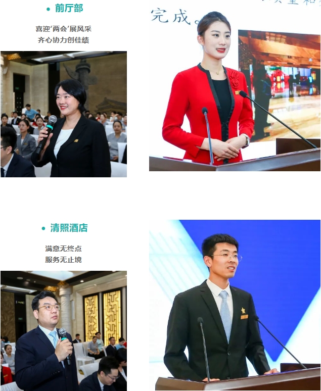会上来自前厅部、餐饮部、会议中心、清照酒店的四名优秀员工,分享了季度优秀服务案例。同时会上对季度服务明星、技术能手、最佳实习生、网评之星等奖项进行了颁奖。