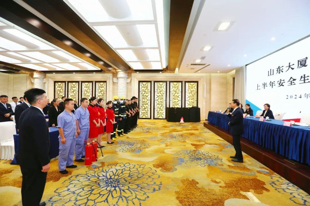 为深入贯彻落实习近平总书记关于安全生产的重要论述,全面落实安全生产工作决策部署,巩固放大安全管理成效, 7月16日上午,山东大厦在中华厅召开上半年安全生产工作会议,本次会议由副总经理王琳主持,大厦中层以上管理人员、外拓项目有关负责人及各部门安全员等参加。大厦党委书记、董事长鹿敏出席会议并讲话。