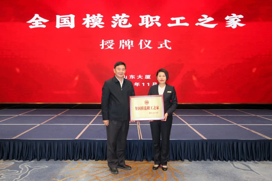 11月14日,山东省总工会常委、省财贸金融工会主席、一级调研员倪道余,省财贸金融工会二级调研员薛胜利,省财贸金融工会一级主任科员冯浩一行莅临山东大厦,为大厦工会荣获中华全国总工会“全国模范职工之家”授牌。董事长鹿敏以及中高层管理人员、工会委员参加并见证授牌仪式,总经理、工会主席李宏梅主持授牌仪式。