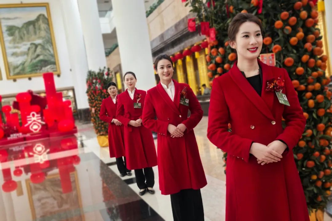 报到当天,大堂内浓浓的年味迎面而来,精心设计的春节拍照打卡点,喜庆的春节主题岛景,令参会代表委员提前感受到了浓厚的节日氛围。