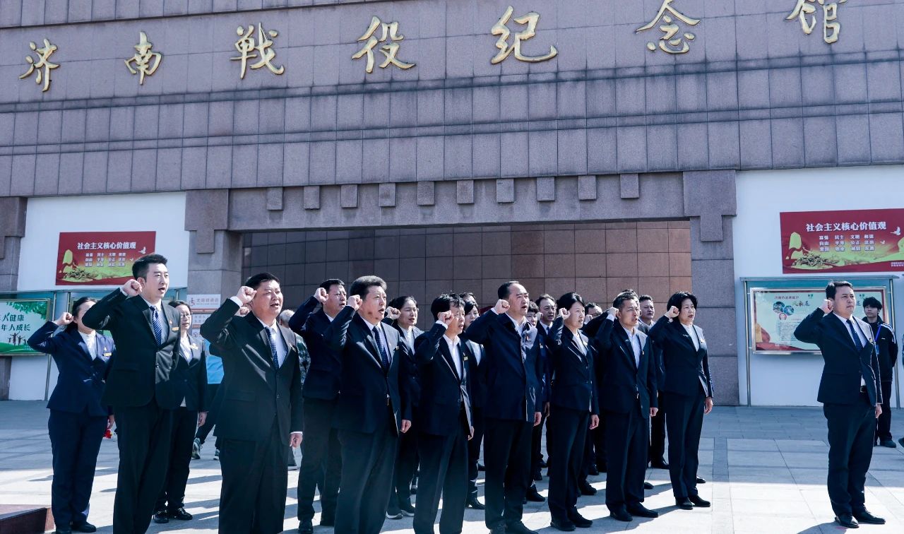在济南战役纪念馆广场,大家重温入党誓词,砥砺初心使命,激扬前行斗志。