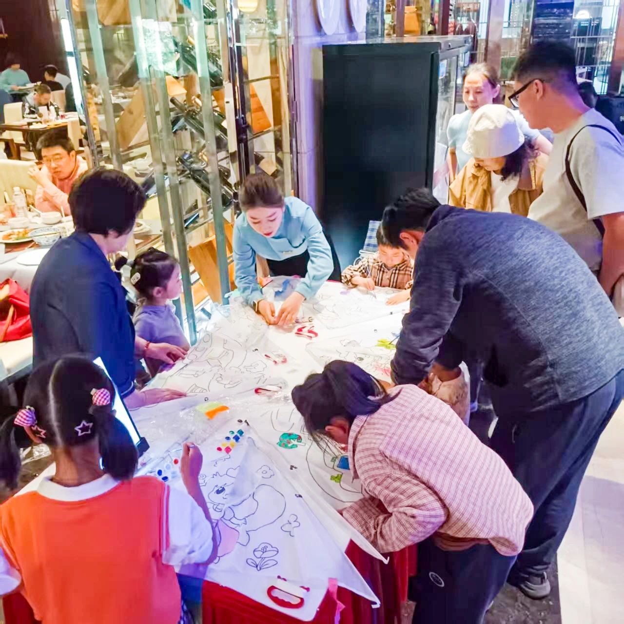 前厅名士轩还为住店宾客开设手作工坊亲子活动,亲子可共同制作扭扭棒花束和彩绘石膏娃娃。孩子们完成的作品带回家,将这份泉城记忆永远收藏。