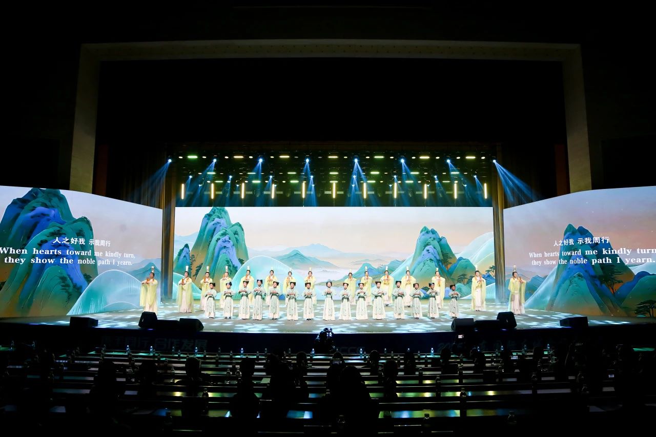 欢迎晚宴以《好客山东・桥连四海》为主题,主桌中央的琉璃 “友谊之桥” 蜿蜒流转。上菜环节创新 “礼乐食享” 出菜秀 —— 旗袍礼仪托举孔府菜踏乐而来,西式管家同步呈上低温慢煮牛肋排,编钟雅乐与刀叉轻碰声交织成文化合奏曲,用味蕾为嘉宾打造一场齐鲁文化之旅。