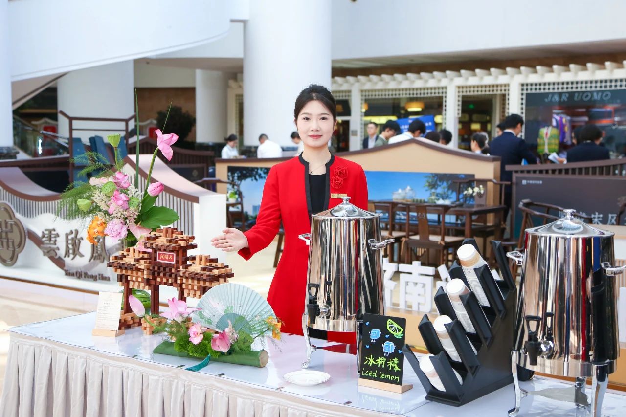 前厅部精心制定接待推进计划,全员投入环境焕新,对嘉宾迎送、入住等环节进行全流程演练,以最佳面貌迎接四海宾朋。根据本次活动的特点与外宾需求,精心组建了专属礼宾、接待、创意策划及一对一贴心服务等多个专项小组,确保各项工作顺畅高效。匠心打造“荷韵”主题迎宾茶水台,巧妙融入山东特色非遗元素并辅以双语介绍,让外宾甫抵大厦便沉浸于浓厚的齐鲁文化氛围之中。
