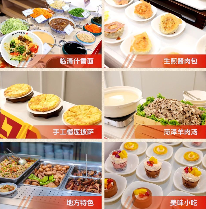 午饭时段,三个特色美食档口前排起长队,气氛热烈,生煎包外酥里嫩、菏泽羊肉汤醇香暖胃、新鲜出炉的披萨芝香浓郁,广受职工欢迎:什香面、沸腾鱼香、菠菜团子及奶油慕斯等多重选择的特色餐品深受职工喜爱:档口菜依托taptap点点体育团膳自有菜品库,以“大锅菜、小锅炒”融合多元风味,配以“风味美食+地方小吃+营养简餐”为广大业主职工提供了更多美味选择,就餐职工真切感受到taptap点点体育团膳的用心与温度。