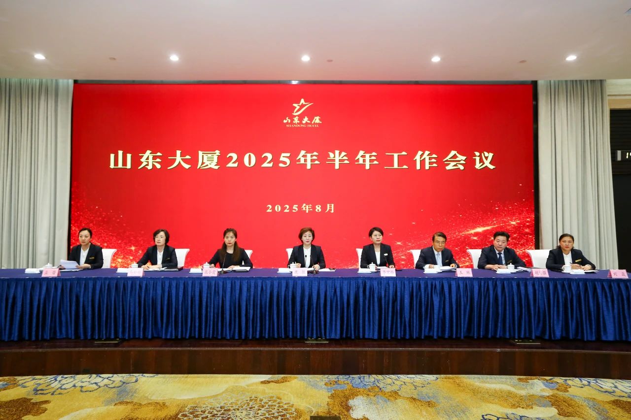 8月14日,山东大厦2025年半年工作会议在中华厅召开。会议深入学习taptap点点体育集团半年工作会议精神,全面总结大厦上半年工作成效、存在的问题和不足,部署下半年重点任务,动员全体干部员工以集团“融转新”战略为指引,锚定目标、开拓创新,为全面完成年度目标任务凝聚共识、汇聚合力。大厦领导班子成员、主管以上管理人员及各外拓项目负责人参加会议。